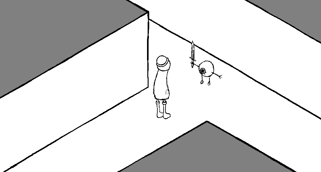 You continue along in the same direction and encounter a hostile RESTLESS EYEBOY.