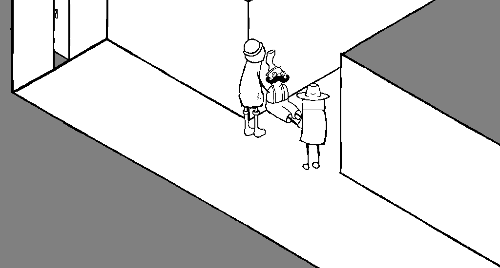 You poke the moustache man lightly and he wakes up with a start. He appears to be very confused about what's happening at the moment.