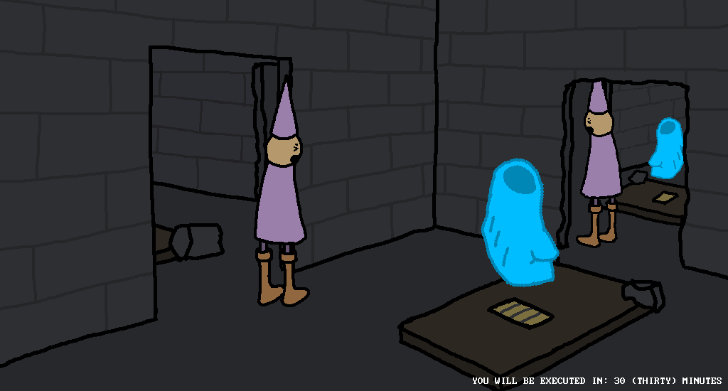 You use the SPELL OF HARD PUNCH on the HOLE IN THE CELL DOOR. This depletes your MANA by 4 (FOUR) MANA POINTS! You now have 2 (TWO) out of 10 (TEN) MANA POINTS remaining!