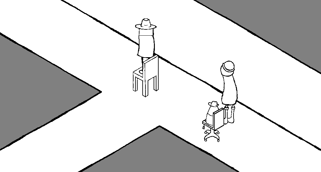 You stand the chair up and stand on it. You also start spinning for good measure.