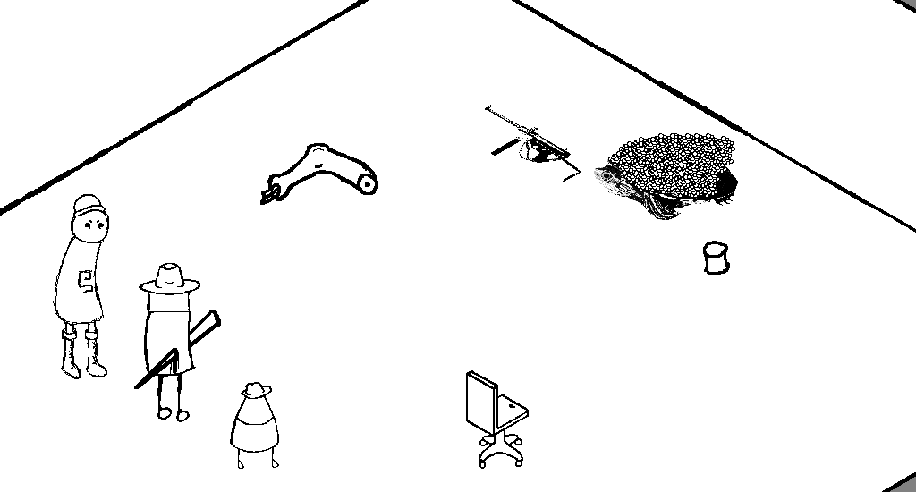 Freddor picks up all of these items, stores the GOLD SHILLING(S) and gives the SUBMACHINE GUN to Victor.