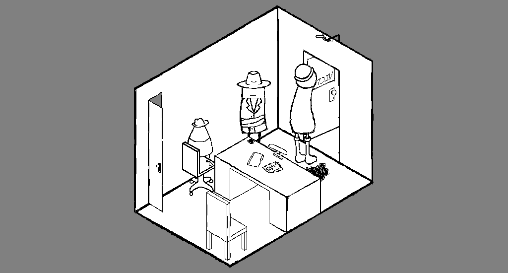 The 1 (ONE) STRANGE CIRCULAR KEY unlocks the door and disappears with the lock. Looks pretty normal out in the hallway.