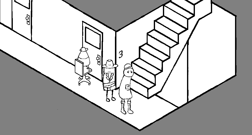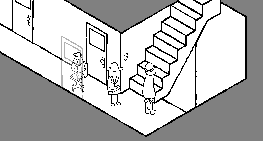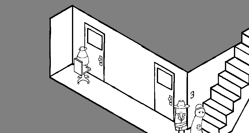 Looking through the window you see another regular office with a desk and chair. Upon closer inspection you can faintly see something behind the desk. The door is locked.