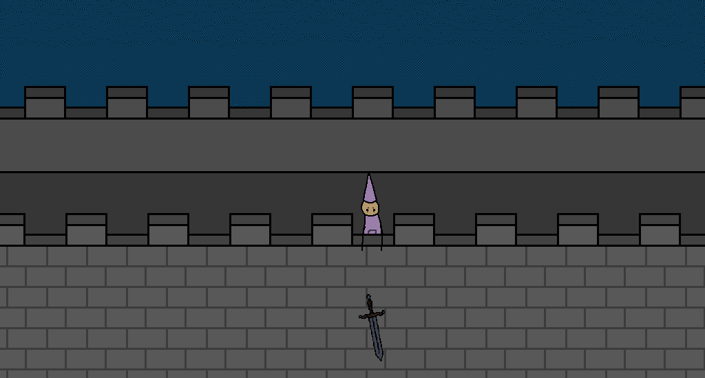 You decide to drop the sword off the edge of the wall to see what will happen.