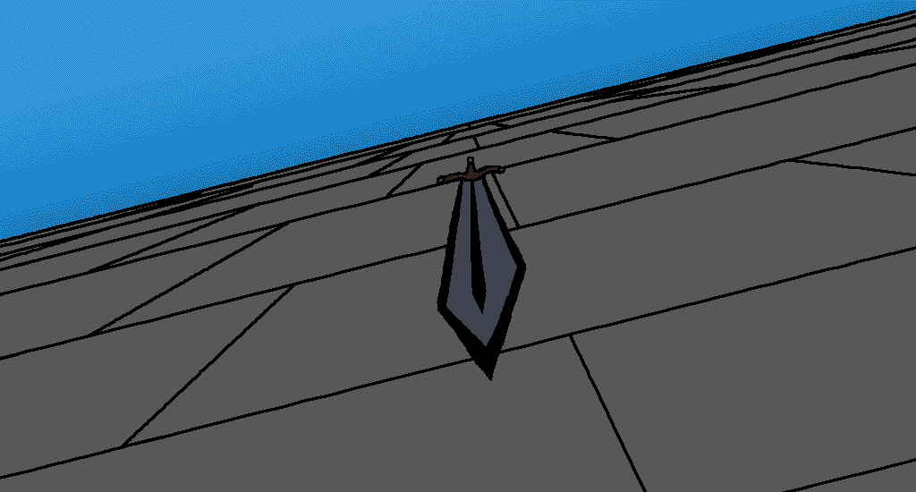 You are now the sword. You fly swiftly through the air towards the ground, the forest approaching at a sickening pace. You think, why did that gnome lad drop me off the wall?