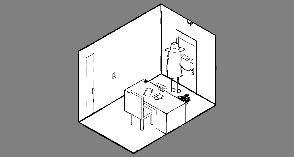 You try both doors in your office but both seem to be locked. The narrow door has a large key hole and the normal door has a strange circular key hole.