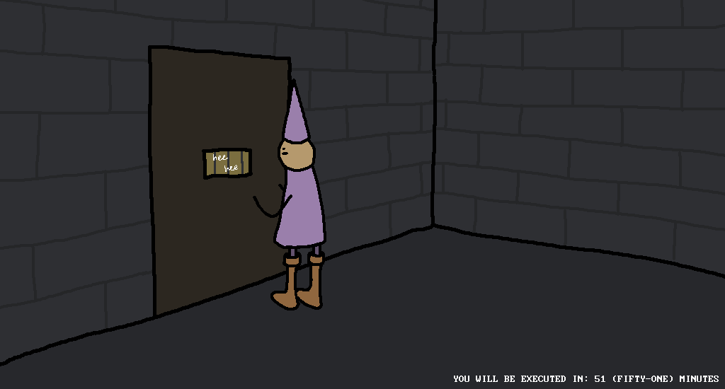 You are now EXTREMELY EXHAUSTED. You cannot perform any more physical actions except for SIMPLE MOVEMENT until you get an adequate amount of rest which YOU DON'T HAVE TIME FOR BECAUSE YOU'RE ABOUT TO BE KILLED BY HIS MAJESTY'S ROYAL EXECUTIONER.