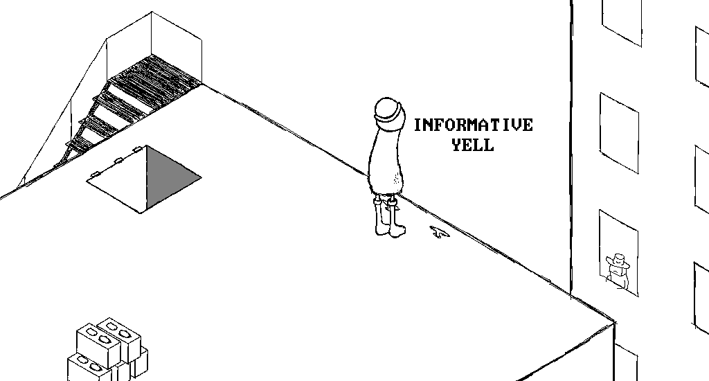 F: Yell to the man about the trap door