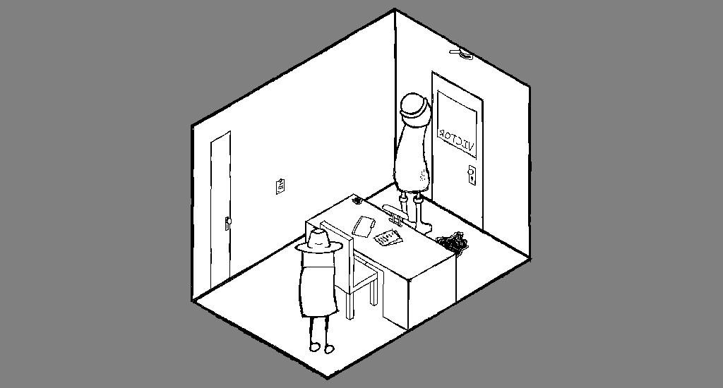 You search around the room and immediately notice the narrow door that has a large key hole and the normal door that has a strange circular key hole. It just so happens that you have 2 (TWO) LARGE KEY(S) so you are able to open at least the narrow door.