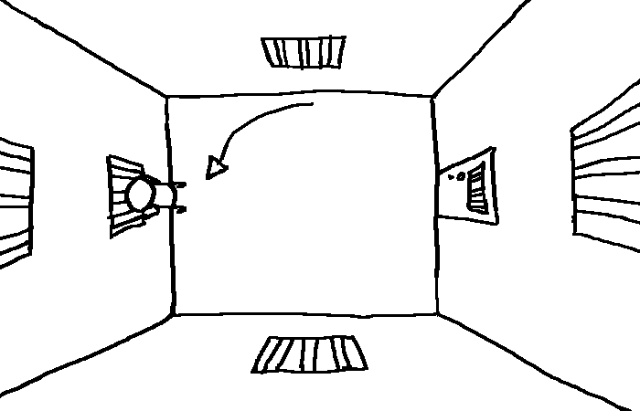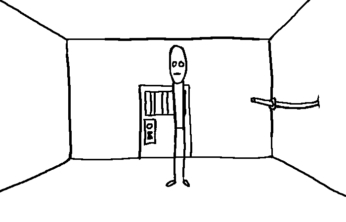 A person in there is staring at you. There is also a KITCHEN ROLLER stuck in the wall.