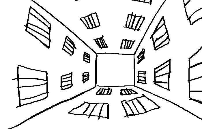 It's just another weird courtyard place surrounded by prison cells.