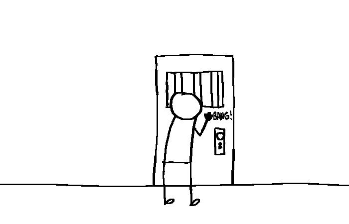 You bang on the wall where there clearly isn't a door, the concrete is cold.