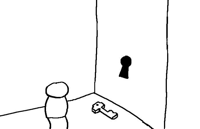 I think that killed him. A large key hole appears on the wall and the hat turns into a large key.